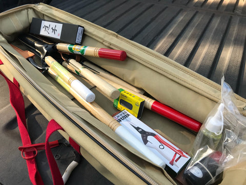 This sturdy canvas bag is nicely padded, water-resistant, and has internal dividers for easy organization. It can carry up to 4 pairs of long shears or loppers, with 2 smaller compartments for hand tools, sharpening kit, lunch, etc.