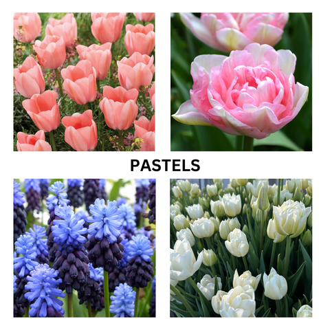 We have created two tulip collections for this event: choose between dark, velvety purply-reds or soft, peachy-pink pastels when you purchase your ticket.